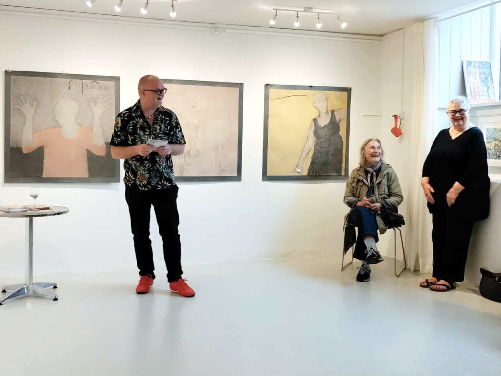 Udstillingen er den anden med titlen “På papir” i Galleri Valdal. Den første, i november-december 2023, viste værker af 11 danske kunstnere. Vi fortsætter traditionen med at vise værker af danske kunstnere, denne gang dog kun tre af slagsen.